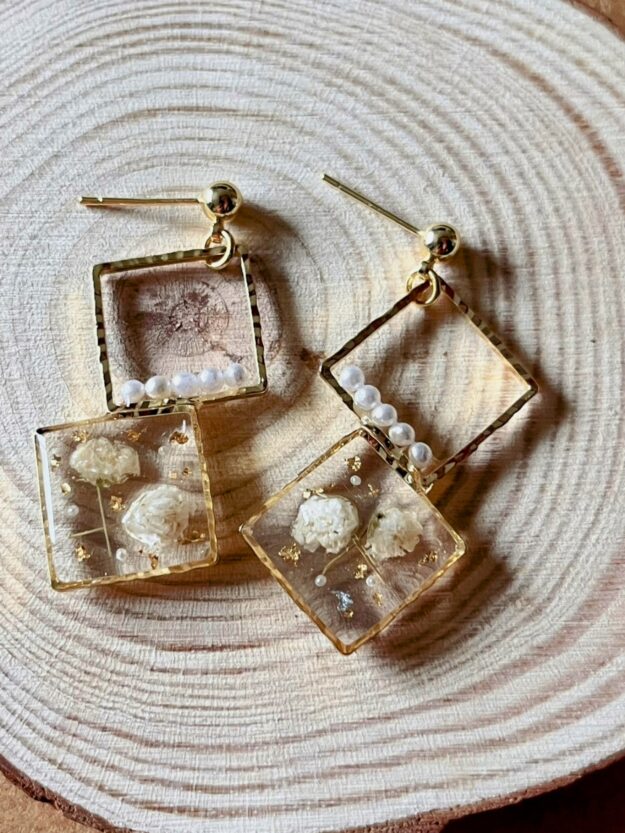 Apportez une touche de nature éternelle à votre style avec ces boucles d’oreilles délicates. Chaque paire est une pièce unique, capturant la légèreté du gypsophile blanc dans un écrin de résine transparente.