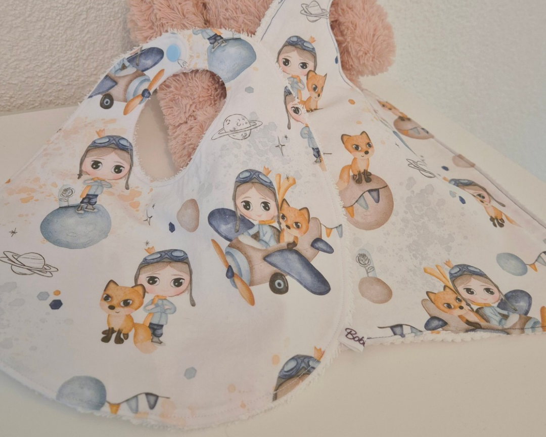 Le bavoir rond est idéal en cas de régurgitations pendant les premiers mois et le bavoir classique est celui qui vous protégera des éventuelles projections de purée lors des premiers repas 😊