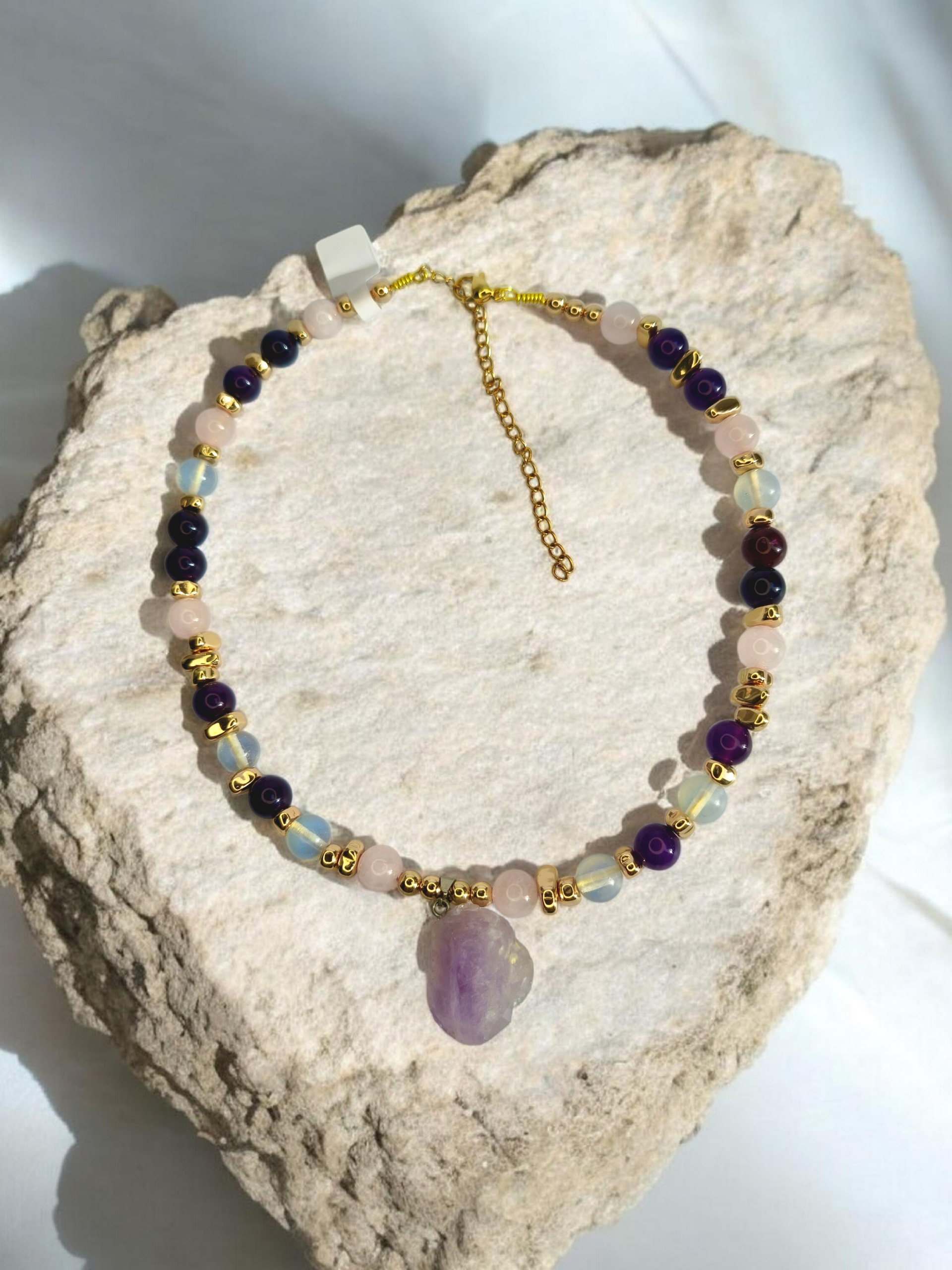 Ce collier est fabriqué à partir de matériaux inoxydables, plaqués Or 18 carrats.