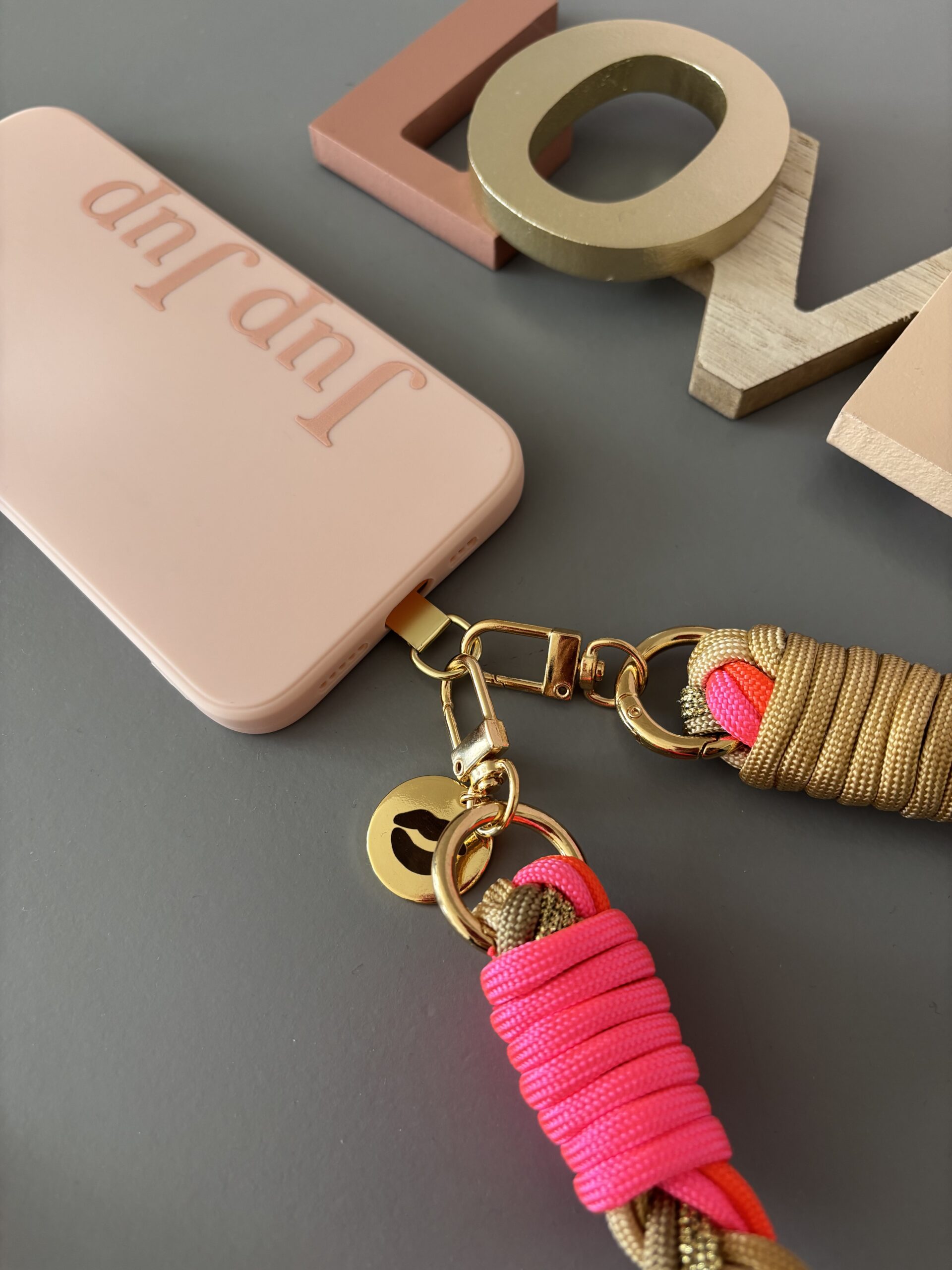 Chaque cordon de téléphone est unique et tissé avec amour. Plus de 10 mètres de cordes Paracord suisse sont utilisées par cordon.