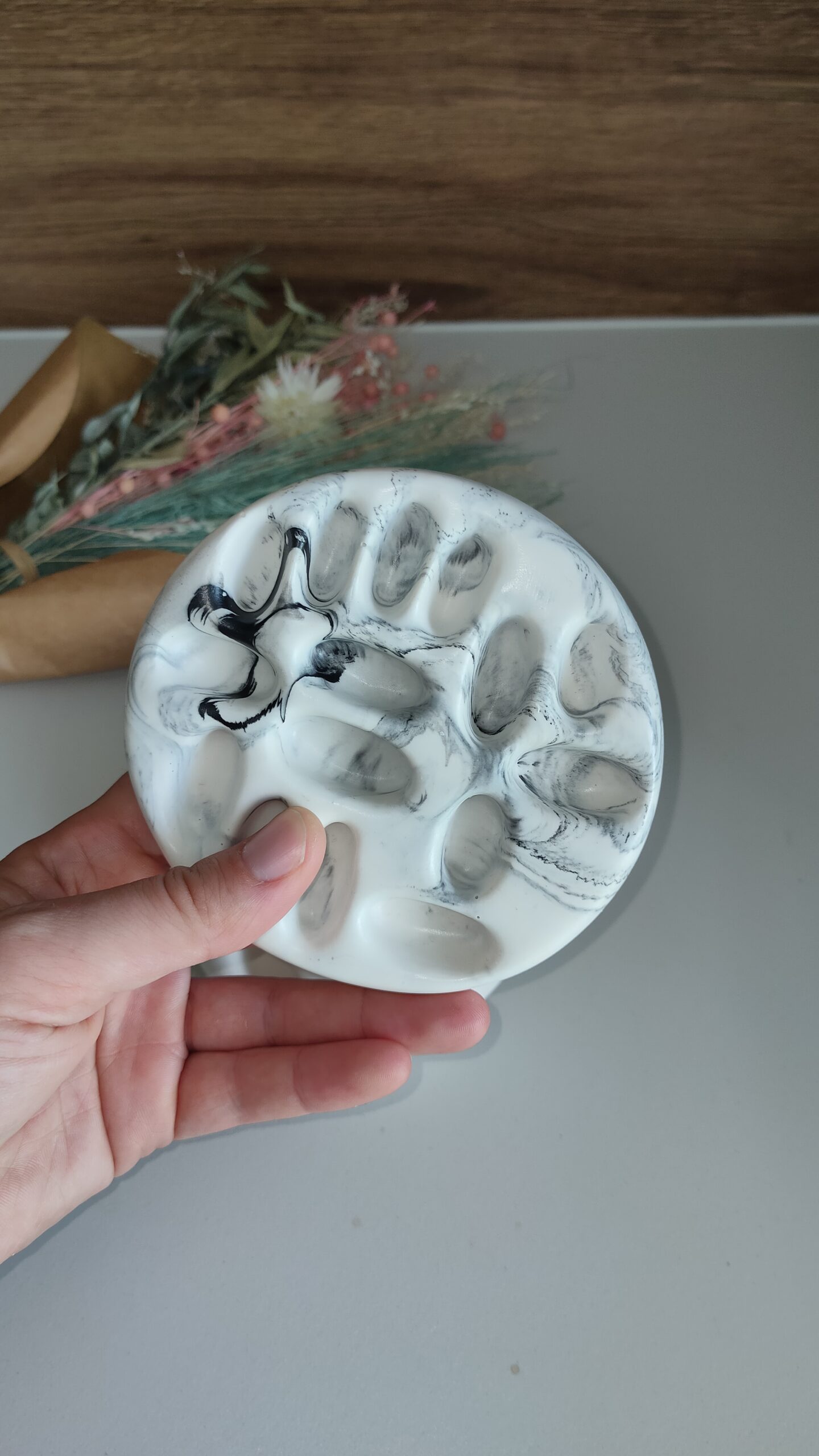 La Jesmonite est une éco-résine, à base d’eau, de pierre à plâtre et d’un liant acrylique. Chaque objet est fabriqué avec soin à la main au Val-de-Travers, pour une décoration durable et intemporel.