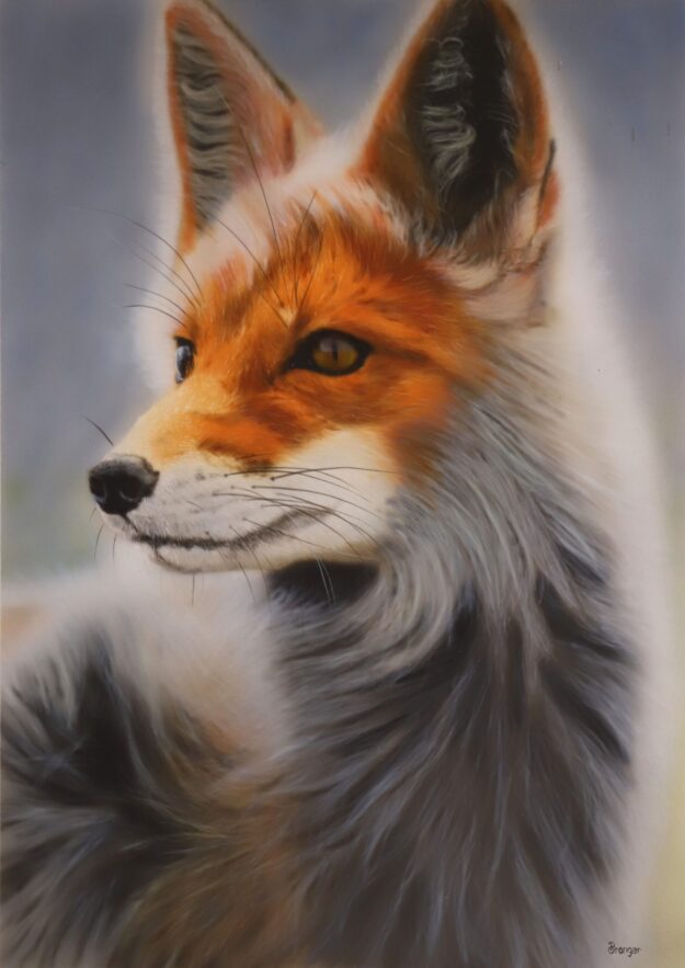 En somme, cette œuvre est bien plus qu’une simple représentation réaliste d’un animal. C’est une invitation à plonger dans un monde de beauté et de poésie, où chaque détail a son importance et chaque jet de peinture de l’aérographe raconte une histoire. C’est une œuvre qui réussit à capturer l’essence même de la nature et à éveiller en nous un sentiment d’émerveillement et de respect pour le monde qui nous entoure.